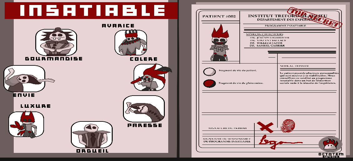 En vue de réhabiliter le patient X, criminellement responsable de la mort de plusieurs personnes, le Docteur Legardeur et ses collègues créent le projet secret "Insatiable" dans le but de le purifier. Cherchant à s'approprier les parts de ses ennemis, X absorbe en lui des fragments de leurs pêchés.